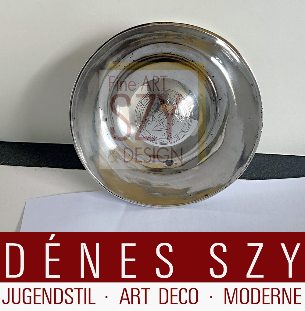 Innen auf dem gewölbten „Insel“ von Blattdekor-Kranz, Lorbeerkranz umrundete Wappen Monogramm -gravour.