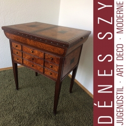 Corps en palissandre avec montures en bronze, plaqué de ronce / incrusté de motifs géométriques