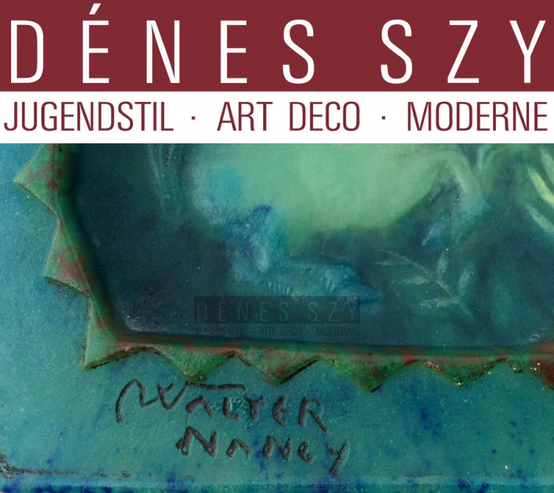 AMALRIC WALTER [ Sèvers 1870 – 1959 Lury-sur-Arnon], PÂTE-SUR-VERRE piatto, Scuola di Nancy, Francia 1920, con motivo di centauro, pasta da vetro