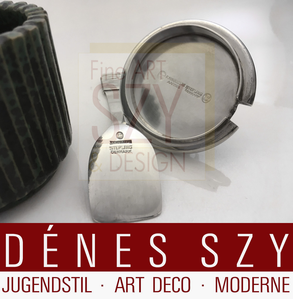 Deckel und Löffel von Frantz Hingelberg, Aarhus, in Sterlingsilber, Deckel mit Jahresmarke 1938
