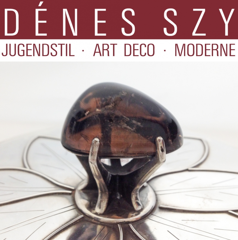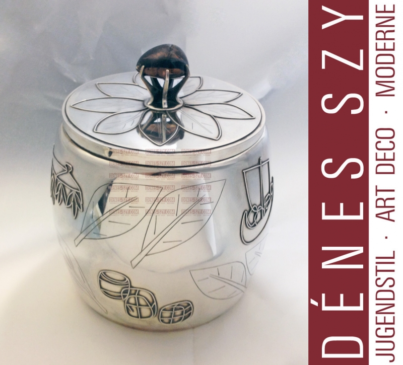 große Art Deco Silber Tabakdose / Teedose / große Deckeldose, Silber 900 mit Original Holzeinsatz und Schmuckstein, Deutschland um 1920