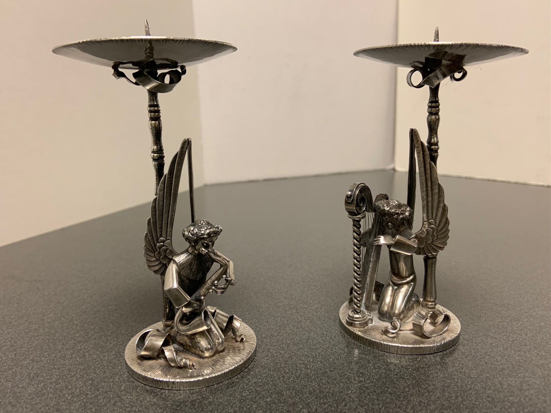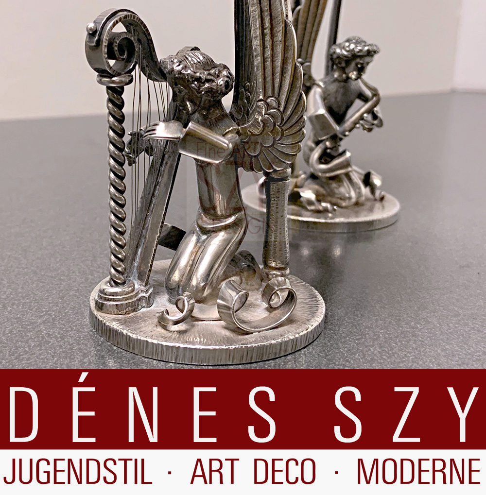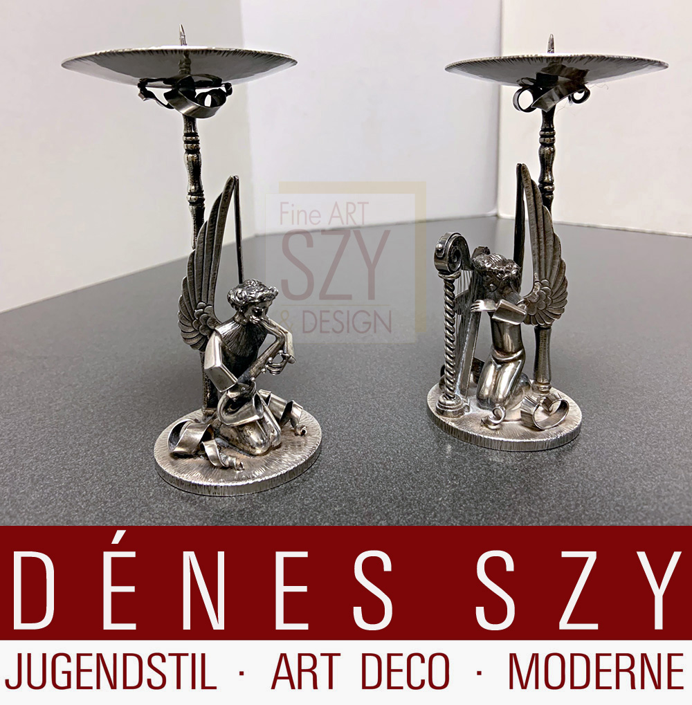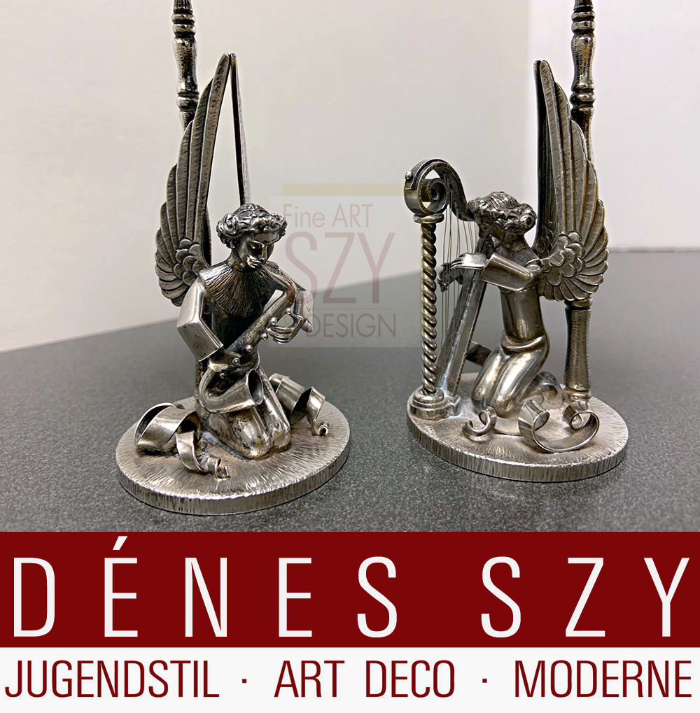 Art Deco Silber Engelskapelle Herbert Zeitner Kerzenleuchter,