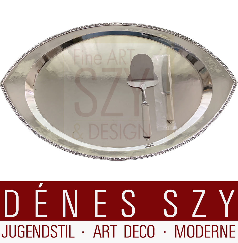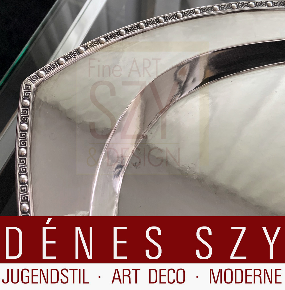Deutsches Art Deco Tablett aus Sterling Silber, ovales Serviertablett, gute Größe für Gläser, Peter Bruckmann und Söhne Silberwarenfabrik, Heilbronn 1910-1920 Deutschland. Silber 800