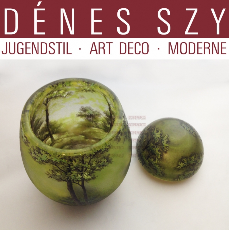 Art Nouveau Daum Nancy 1900 Deckeldose Sommerwald,