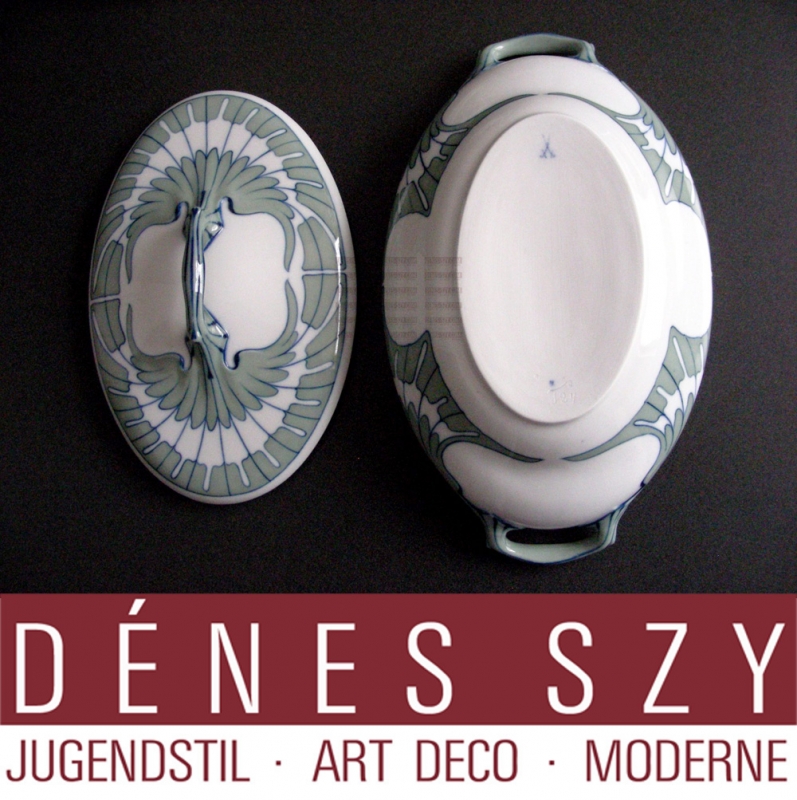 Art Nouveau, porcelaine MEISSEN, motif d’aile, soupière par HENTSCHEL