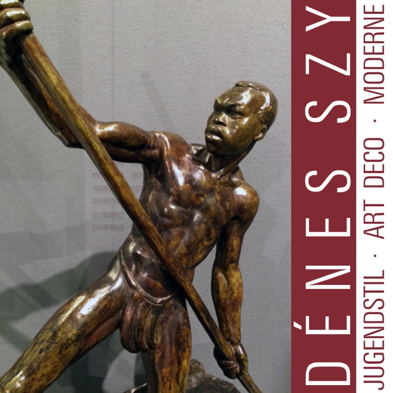 Arthur Dupagne [1895-1961] Bronze: Rudernder Afrikaner, Belgien ca. 1936