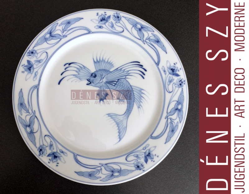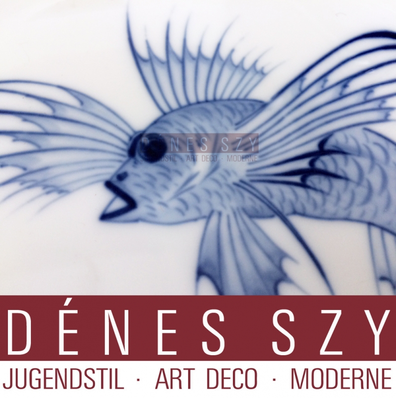 Plat en porcelaine Art Nouveau de la ligne Hamburg – America, Meissen 1905-10, sous décor de poissons dragonfish décoratif en bleu cobalt, design Otto Eduard Voigt?