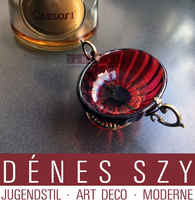 zweihenklige Rubin Glas Weinbrandschale, vergoldete Silberfassung