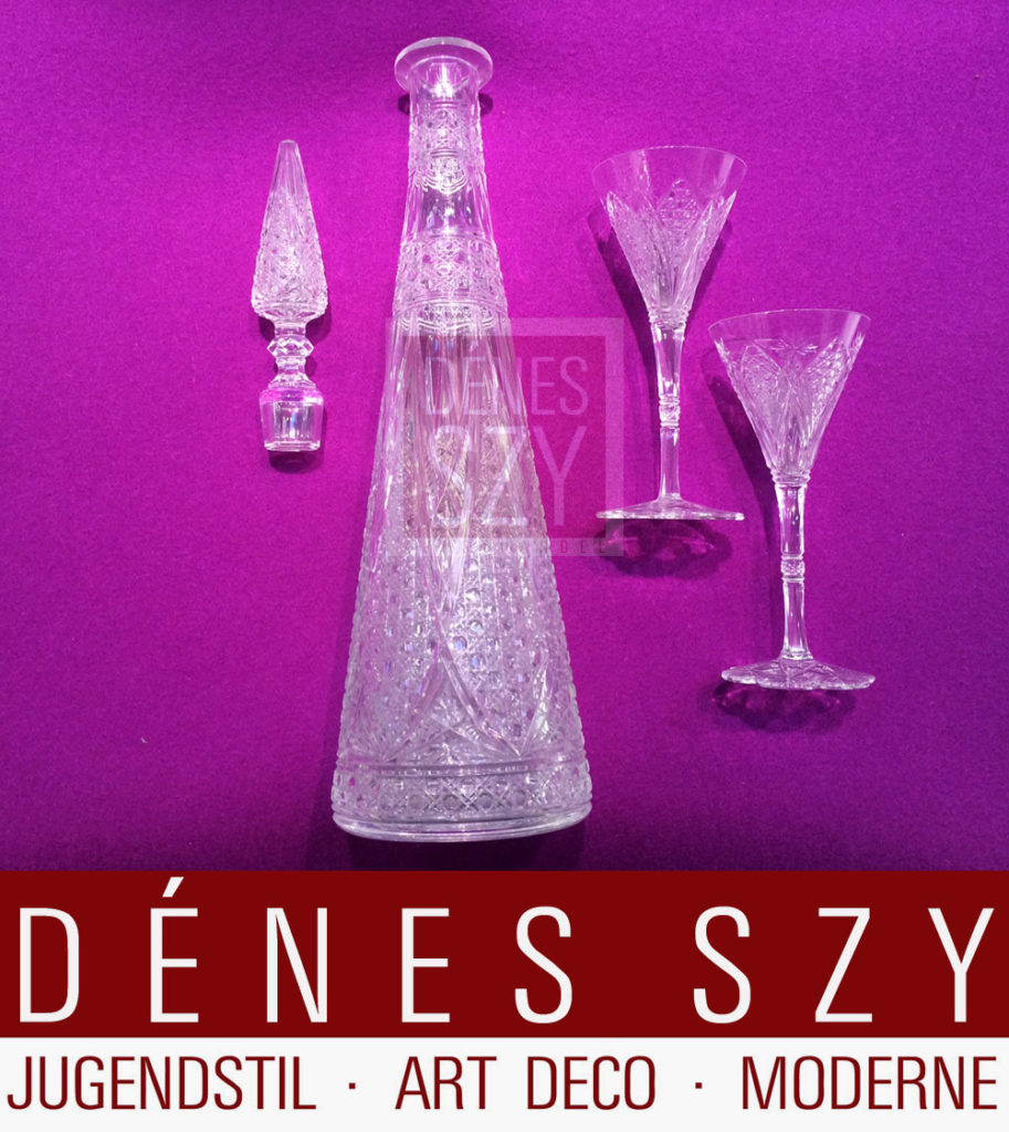 Französische Sherry Kristal Karaffe mit sechs Sherry Gläsern
