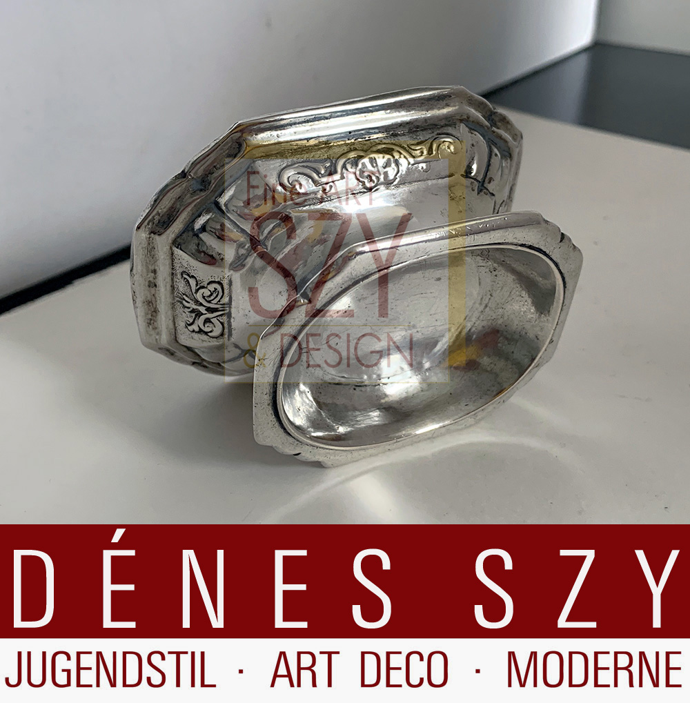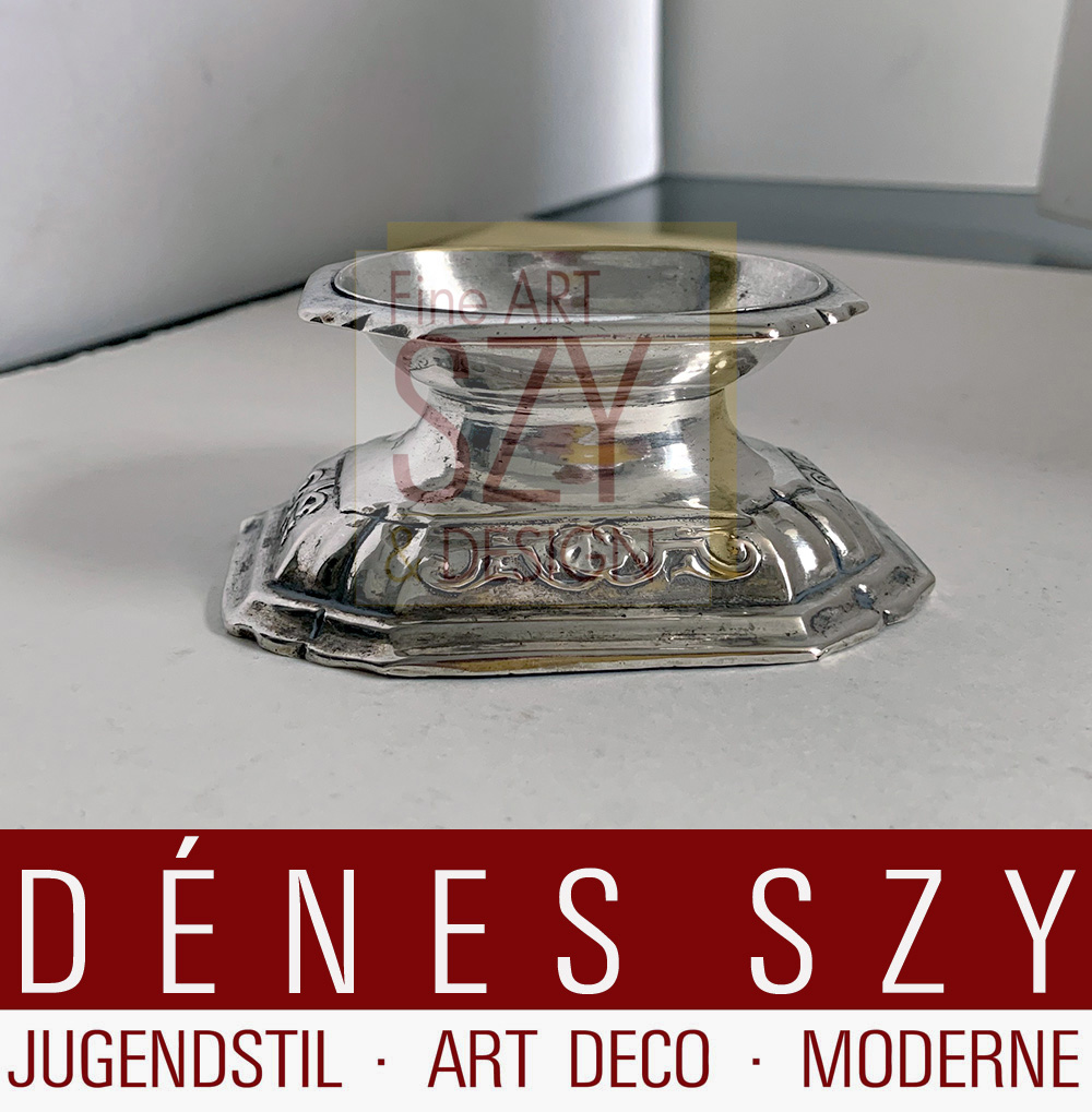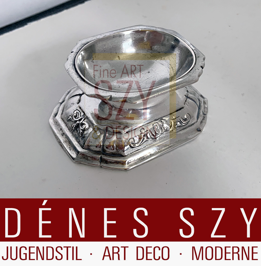 Early baroque salt bowl, spice bowl with Regence decoration of silver, 13 Loth c. ? 812,5/1000 ca. 1730. townmark of Crailsheim (three right-turned overturned black kettle hooks ). Makers-Mark: IES in the oval not yet resolved.