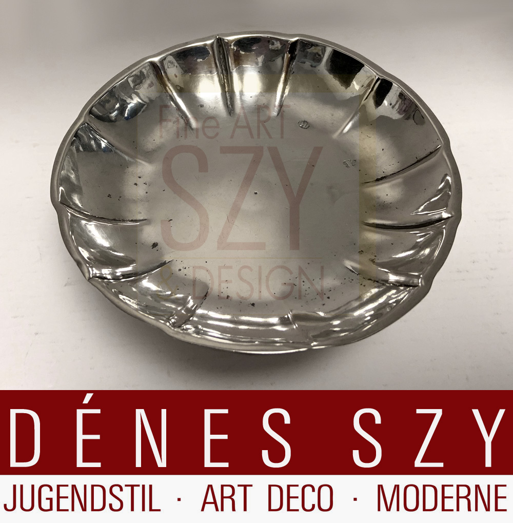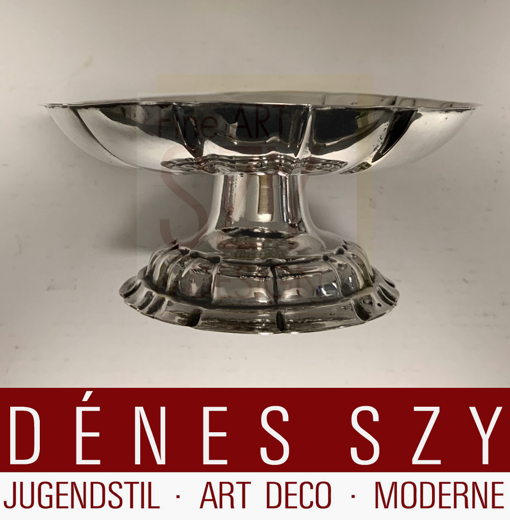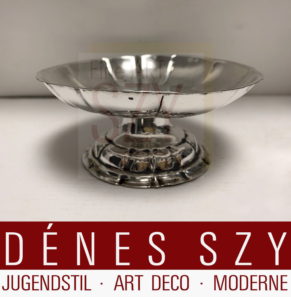 Silber, getrieben. Auf eingezogenem, getreppten Fuß, runde fassonierte Schale mit geschwungenen Faltenzügen.
