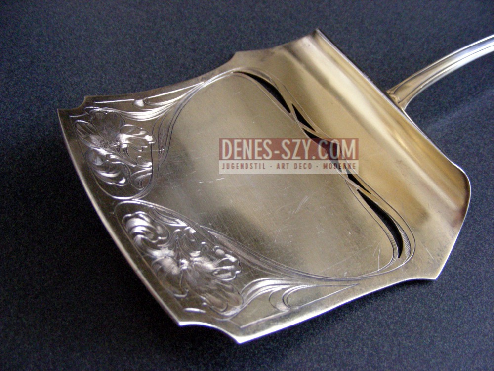 Couverts Art Nouveau, serveur d’asperges de la WORLD EXHIBITION CUTLERY, # 2401, modèle Iris, Peter Bruckmann et ses fils, Heilbronn, Allemagne, argent 800, partiellement doré.