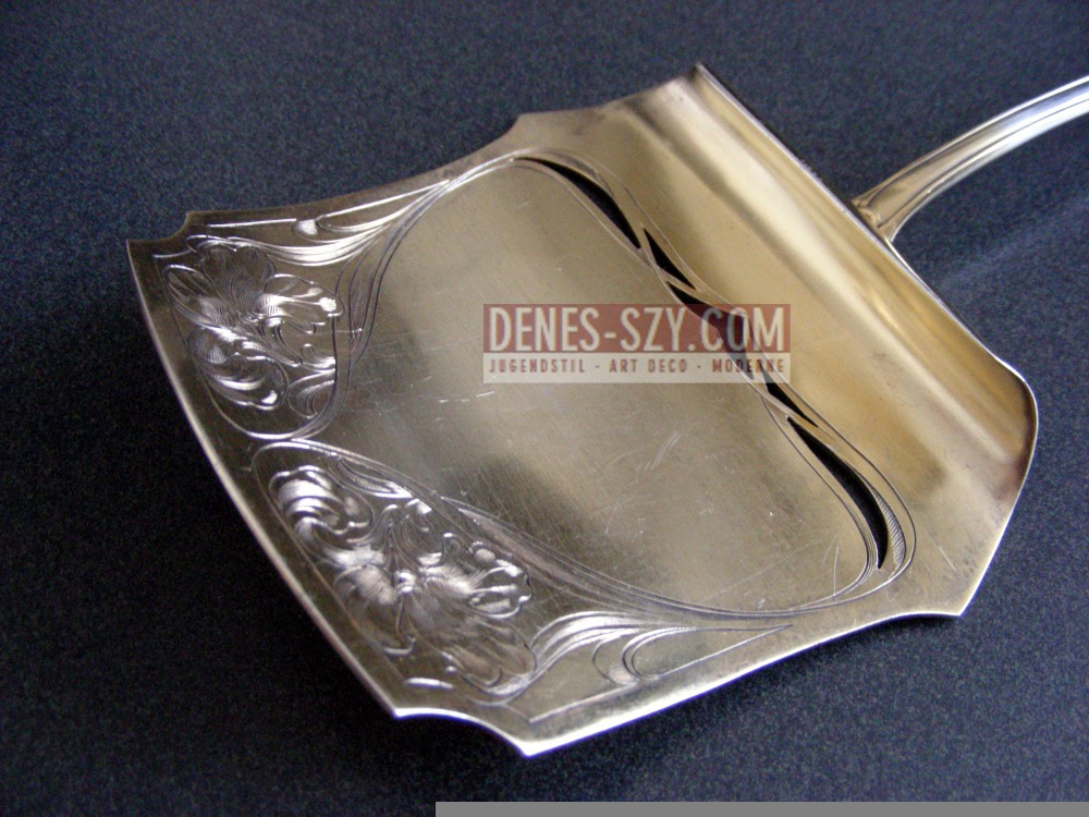 Bruckmann Iris pattern German art nouveau silver cutlery, World Exhibition Paris 1900 Iris pattern German Art Nouveau silver cutlery by Bruckmann Peter Bruckmann and sons Silver cutlery canteen The Iris pattern was shown at the World Exhibition in Paris 1900. GERMAN ART NOUVEAU SILVER CUTLERY Model-No. 2401, Iris pattern Design and execution by Peter Bruckmann and Sons, Heilbronn, Germany, Silver 800, partly gilt made for and shown at the World Exhibition Paris 1900. excellent condition Solid silver, gilt and engraved, Geramn Art Nouveau Asparagus server, Iris pattern, made for the World Exhibition Paris 1900 by Peter Bruckmann and Sons, Heilbronn Germany. Weltausstellungsbestec.