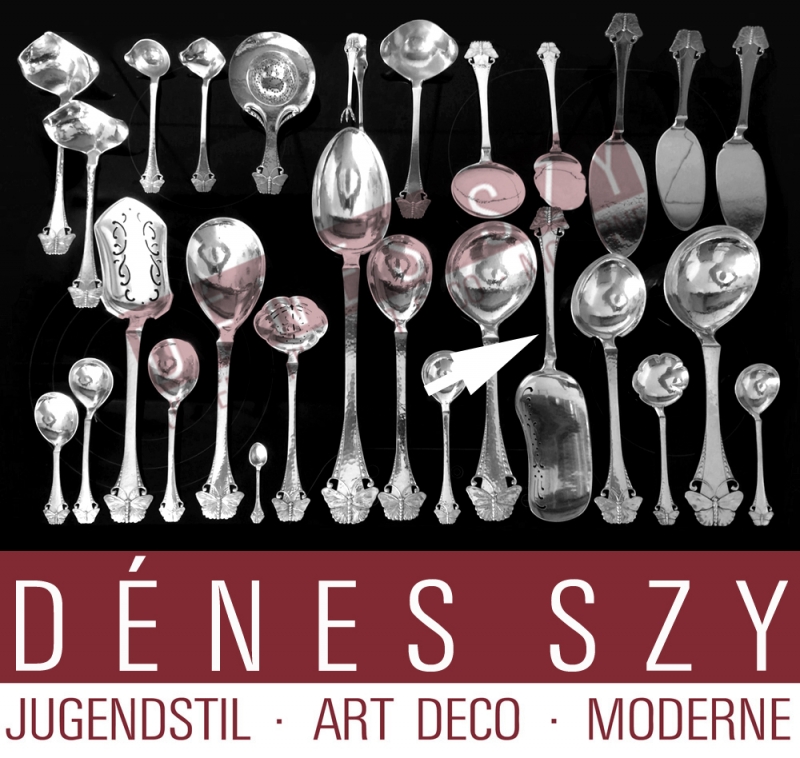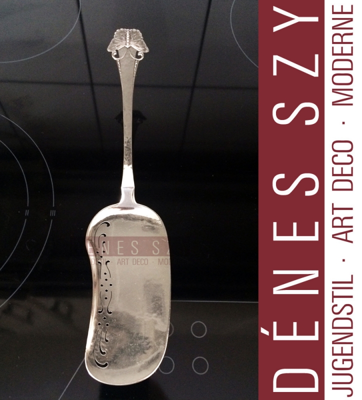 Butterfly pattern Danish Art Nouveau Sterling Cutlery By Frigast fish server Butterfly pattern Danish design Art Nouveau Sterling silver handcrafted cutlery serving piece By Frigast Denmark pierced fish server Fish serving cutlery – SUMMER FOUGL Pattern “butterfly” or “summer bird”, silver cutlery Design: Denmark around 1900/05, silver 830, Danish DESIGN CUTLERY Length: 27,2 cm – 1 inch (inches) = 2.54 inches – Condition: very good, rare, Salt spoon on the first photo = 7 cm long