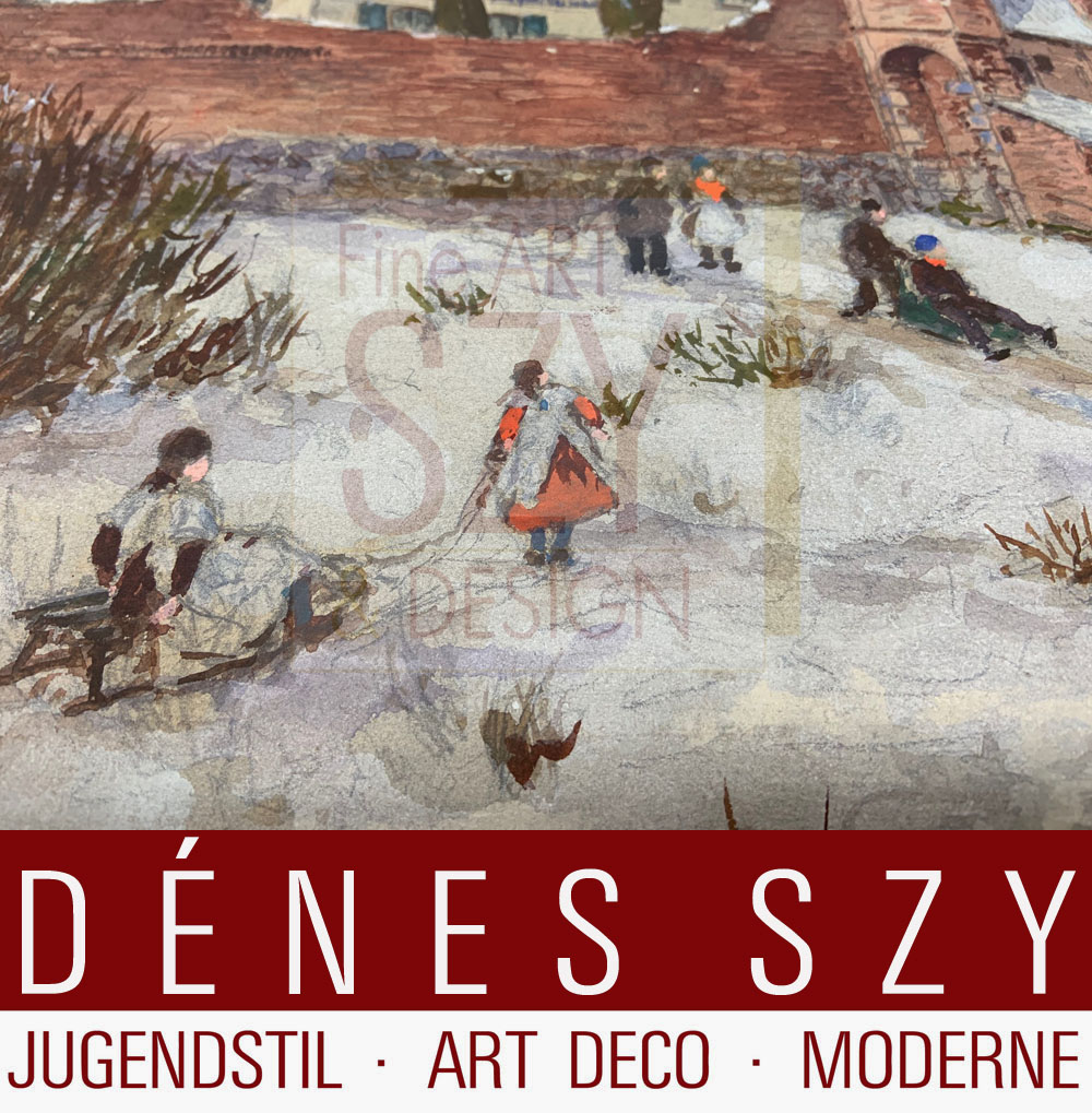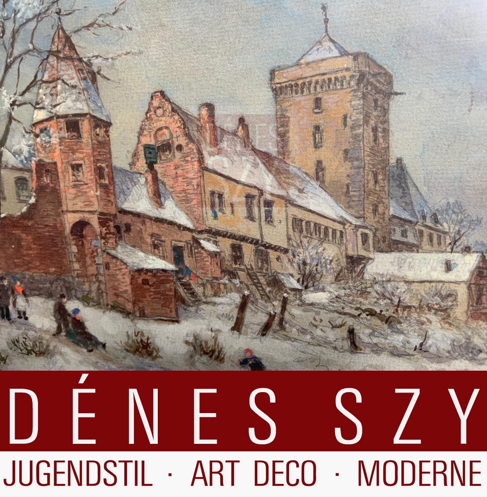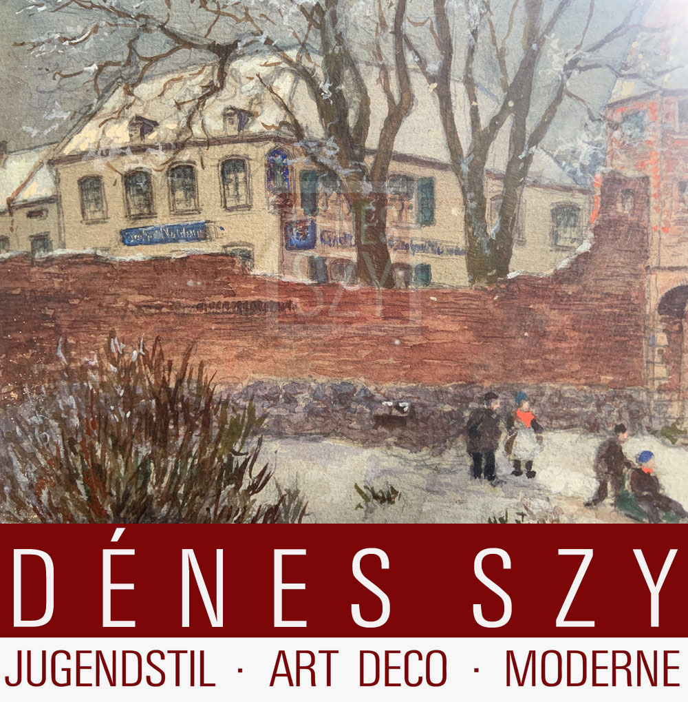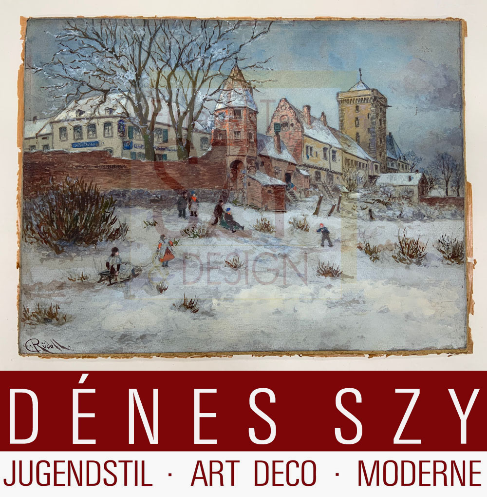 Carl Rüdell Gouache Zons sur le Rhin en hiver Ruedell, Carl] 1855 Trèves – 1939 Cologne] Zons – Zons sur le Rhin en hiver Gouache au conseil de l’académie. Étiquette adhésive avec données au dos (voir photo) Dimensions environ 39 x 51,5 cm – 1 pouce (2,54 cm) – Signé CRüdell en bas à gauche Etat: très bon état d’origine