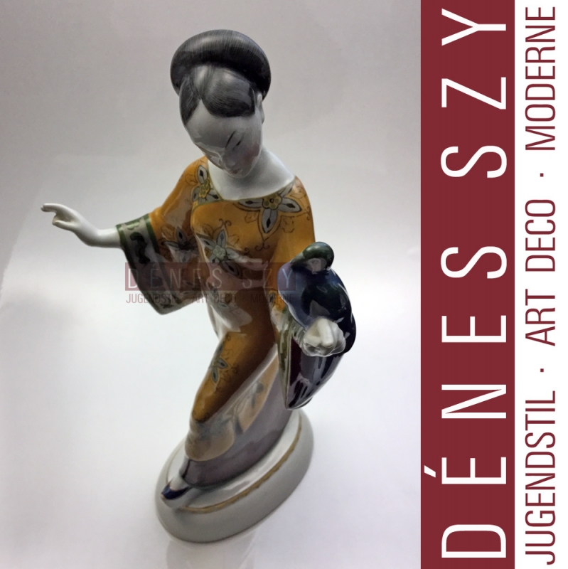 HOCHZEITSZUG KPM BERLIN Jugendstil Porzellan Figur, Chinesin mit Papagei: