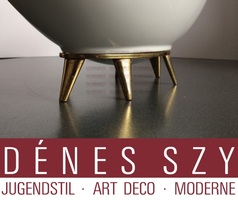 fruttiera | ciotola di fiori disegno: Siegmund Schütz 1953 esecuzione: manifattura delle porcellane di Berlino, KPM Berlin, porcellana bianca sulla base bronzato dimensioni: altezza 20 cm, lunghezza 46 cm, profondità 17,5 cm — 1 Inch (Zoll) = 2,54 Zentimeter — condizione buona