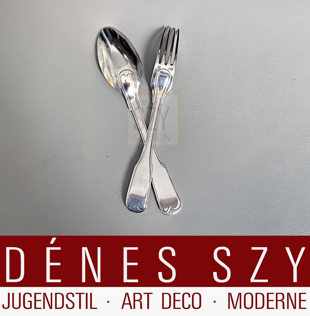 Rhenish silver dinner set, cutlery, dessert spoon and dessert fork, 812.5/1000, Cologne ca. 1792-1806.