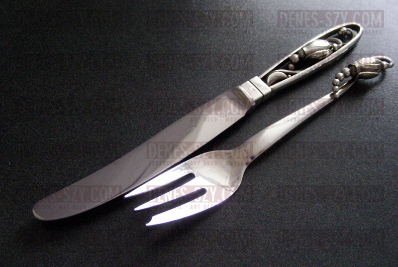 Georg Arthur Jensen (1866 – 1935 Kopenhagen) eröffnete nach absolviertem Bildhauerei-Studium und anschließender Mitarbeit im Atelier des dänischen Hofjuweliers Michelsen 1904 sein eigenes Atelier in Kopenhagen. Hier entsehen vor allem Schmuckstücke, aber auch vereinzelt Korpusware, wie eine kleine Teekanne, die zum Prototyp der Besteck- (1919 entworfen) und Korpus-Serie MAGNOLIA # 2 / BLOSSOM # 84 wurde. Georg Jensens erster Besteckentwurf entstand 1906 für das Muster ANTIK / CONTINENTAL. Bereits 1924 wurde eine Zweigstelle der höchst erfolgreichen Georg Jensen Silberschmiede / silversmithy auf der 5th Avenue in New York eröffnet. Bis heute werden ausschließlich qualitativ hochwertige Silberarbeiten, meist handgeschmiedet, namenhafter Designer vertrieben, wie Sigvard Bernadotte, Muster BERNADOTTE, Harald Nielsen, Muster PYRAMIDE, Johan Rohde, Muster KÖNIG, Otto Gundlach Pedersen, Muster KAKTUS, Henning Koppel, Nanna Ditzel, Vivianne TORUN Buelow-Huebe, etc.