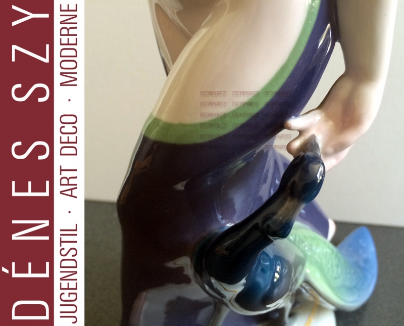 Hochzeitszug KPM BERLIN Jugendstil Porzellan Figur, Inderin mit Pfau,