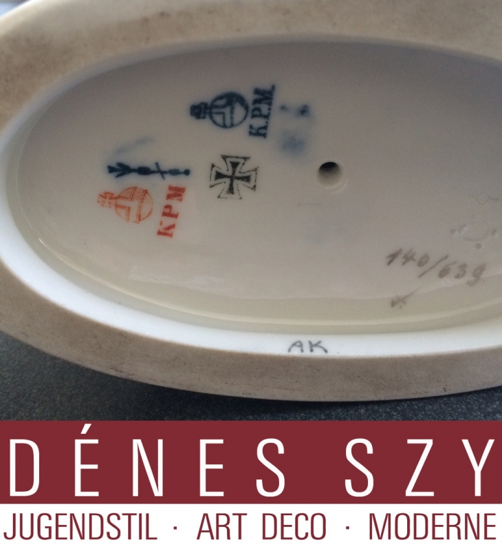 CORTÈGE NUPTIAL KPM Berlin, Indienne avec paon, sculpture en porcelaine Indienne avec Poan, Art Nouveau, sculpture en porcelaine du » cortege nuptial » Sculpture en porcelaine du cortège nuptial d´Amberg, KPM Berlin manufacture porcelaine royale,1914. Signé: Adolph Amberg 1904-1910. Décor marqueté en porcelaine doré. Signature émaillé sur piédestal: »AMBERG » –1 Inch ( douane)=2,54 Centimètre– Marque de sceptre, globe impérial rouge avec KPM. sermonte d´une croix de guerre avec insigne O de 1914, N°de serie 9443, flanqué 4F,140/639 et marqué en noir Condition: très bien
