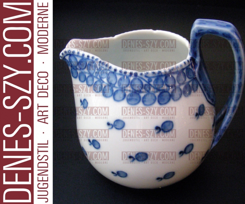 Crémier Meissen Art Nouveau porcelaine motif Riemerschmid, Boîte de lait, crémier, Service en porcelaine Art Nouveau de Meissen Motif Riemerschmid / panicule bleue Conception: Richard Riemerschmid 1903/04 Exécution: Manufacture nationale de porcelaine Meißen 1924-34, période Pfeiffer Marques: Knaufschwerter État: très bon