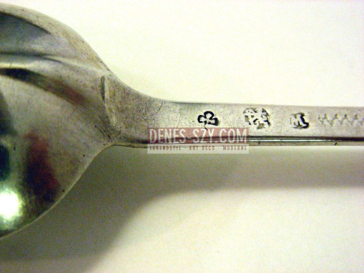 Cuillère baroque en argent de Düsseldorf, Exécution: Duesseldorf 1724/26, Marques: marque de Ville pour Duesseldorf, marque annuelle M pour 1724/26,  marque de Maître non répertoriée à Clasen