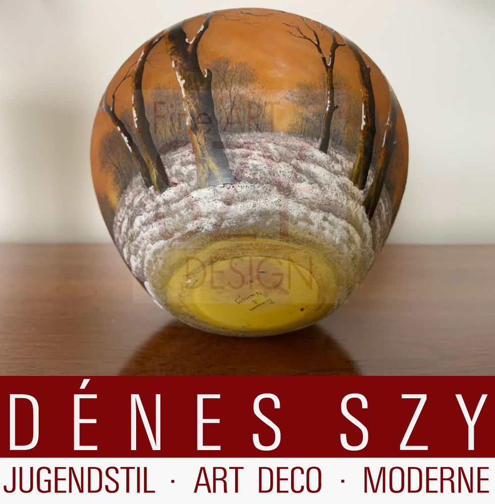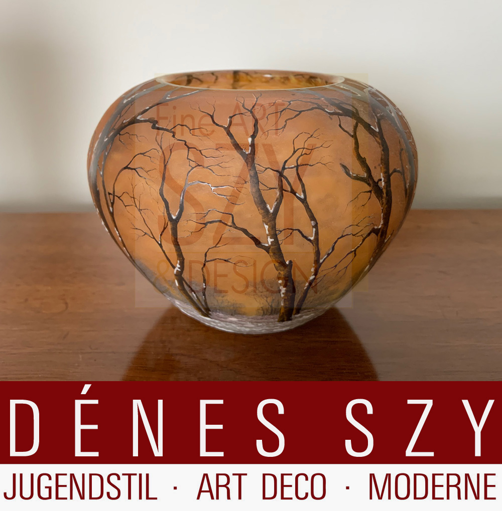 Daum Nancy Art Nouveau Glas Kugelvase Winterlandschaft