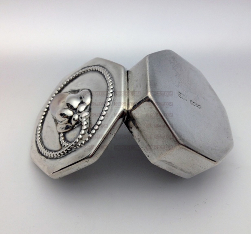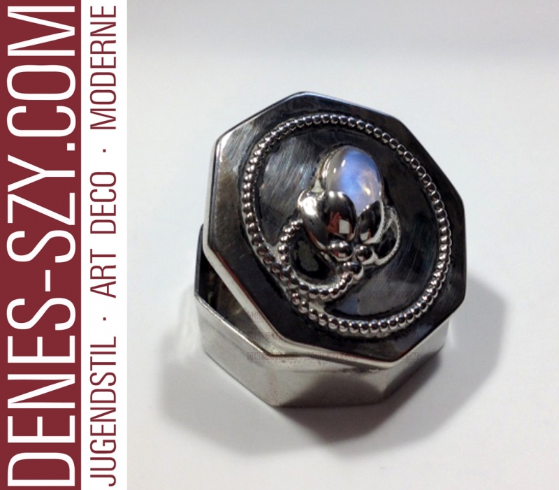 Art Deco 6 seitige kleine Schmuckdose Pillendose mit Mondstein
