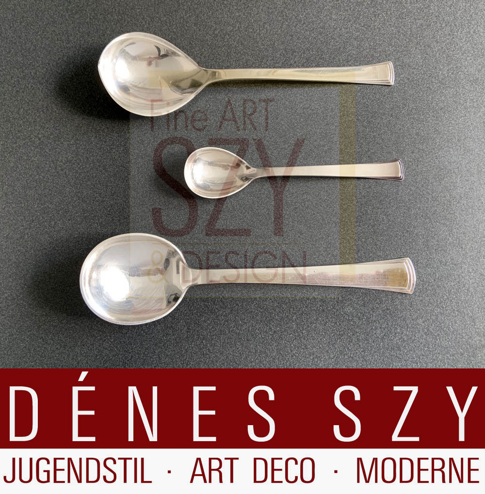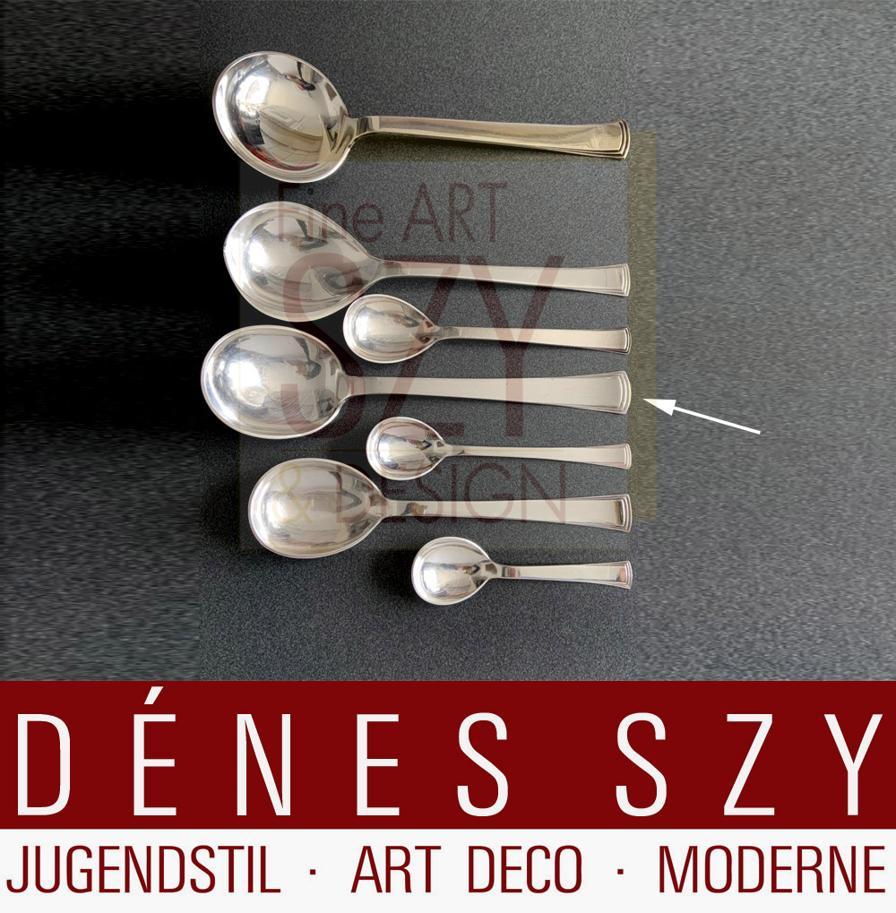 Evald Nielsen Art Deco Silber Besteck Kongo 32, Vorlegelöffel mit ovaler Laffe, Länge 22,7 cm, Entwurf: Aage Weimar,  Ausführung: Evald Nielsen Silberschmiede, Dänemark, Sterling Silber 925