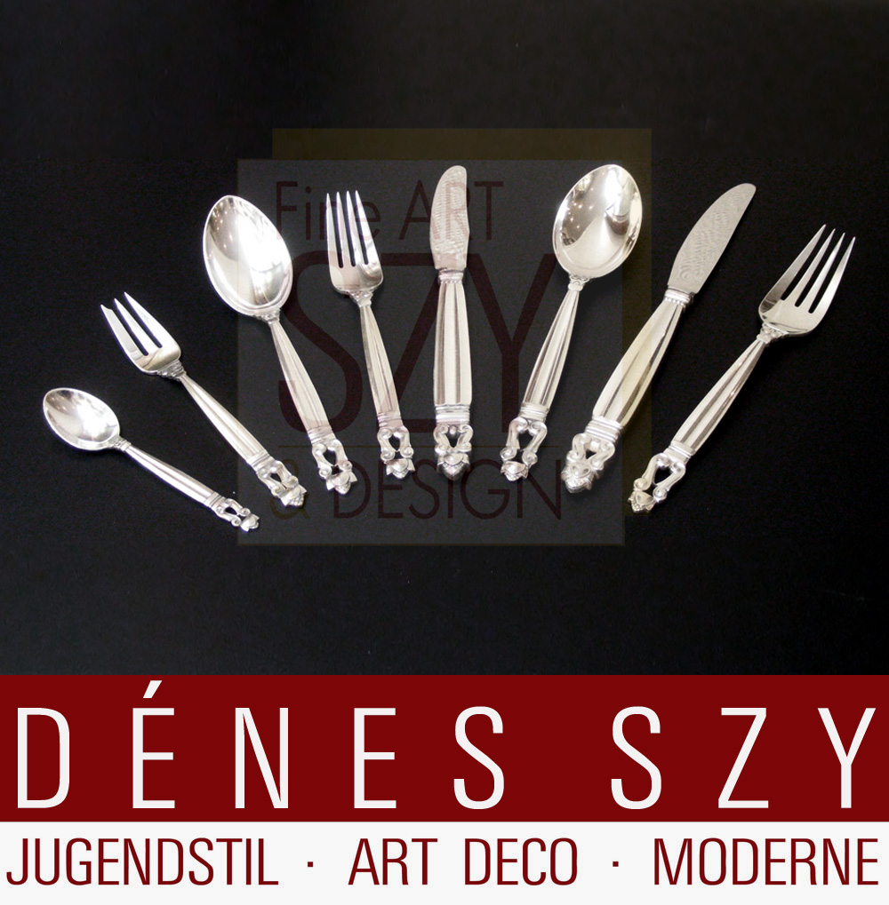 Johan Rohde för Georg Jensen modell ACORN, Konge, Bordsbestick, bordsafflar, bordsknivar, bordsskedar, ….