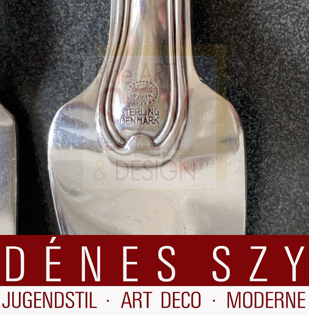(1866 – 1935 Kopenhagen) eröffnete nach absolviertem Bildhauerei-Studium und anschließender Mitarbeit im Atelier des dänischen Hofjuweliers Michelsen 1904 sein eigenes Atelier in Kopenhagen. Hier entsehen vor allem Schmuckstücke, aber auch vereinzelt Korpusware, wie eine kleine Teekanne, die zum Prototyp der Besteck- (1919 entworfen) und Korpus-Serie MAGNOLIA # 2 / BLOSSOM # 84 wurde. Georg Jensens erster Besteckentwurf entstand 1906 für das Muster ANTIK / CONTINENTAL. Bereits 1924 wurde eine Zweigstelle der höchst erfolgreichen Georg Jensen Silberschmiede / silversmithy auf der 5th Avenue in New York eröffnet. Bis heute werden ausschließlich qualitativ hochwertige Silberarbeiten, meist handgeschmiedet, namenhafter Designer vertrieben, wie Sigvard Bernadotte, Muster BERNADOTTE, Harald Nielsen, Muster PYRAMIDE, Johan Rohde, Muster KÖNIG, Otto Gundlach Pedersen, Muster KAKTUS, Henning KoppelNanna DitzelVivianne TORUN Buelow-Huebe, etc.