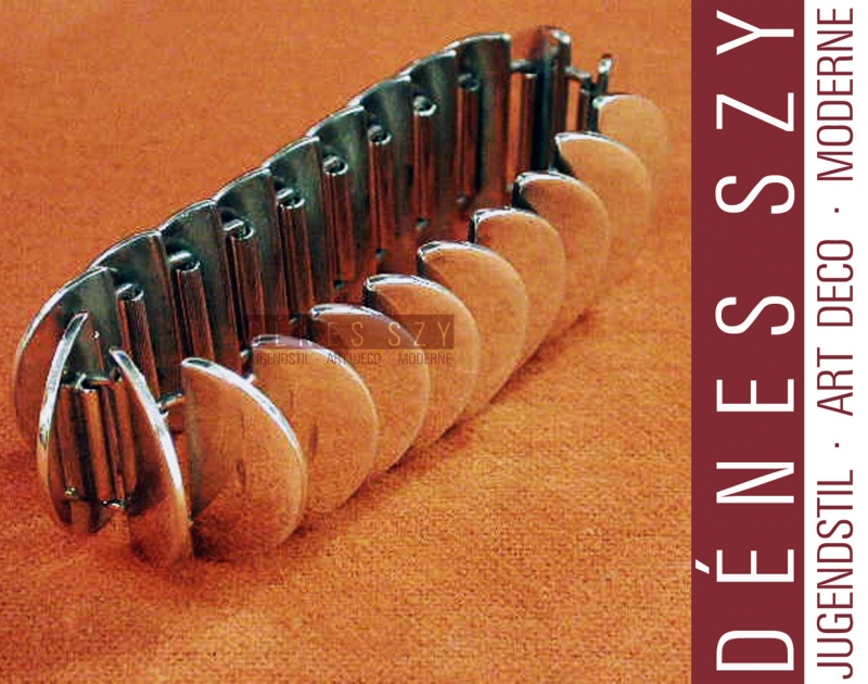 Georg Jensen Silber Schmuck Armband 169 Design Astrid Fog ‘DISK’ Armband Nr.169 Entwurf: Astrid Fog (1911-1993) 1969 Ausführung: Georg Jensen Silberschmiede, Kopenhagen 1969 Daenemark Silber 925, Sterling Silber Maße: Länge / Length: 7,25 Inches — 1 Inch (Zoll) = 2,54 Zentimeter — Similar item can be found on npage 121 in the book of Janet Drucker, “Georg Jensen, A tradition of splended Silver” Astrid FOG (1911-1993) “In 1969, Astrid Fog released her first jewelry collection for Georg Jensen, and is noted for her modernist sensibilities and combinations of simple geometric shapes, such as circles, squares, and rectangles. Her jewelry is distinctive in its large bold shapes, often utilizing lightweight, hollow silver forms. Although unconventional, her jewelry stands as a testament of the fashions of her time period. Fog is also associated with Royal Copenhagen Porcelain Manufactury and designs clothing as well as lamps.” From: Literatur: Taylor und Laskey: Georg Jensen Holloware, The Silverfund collection Seite, 2003 Georg Arthur Jensen (1866 – 1935 Kopenhagen) eröffnete nach absolviertem Bildhauerei-Studium und anschließender Mitarbeit im Atelier des dänischen Hofjuweliers Michelsen 1904 sein eigenes Atelier in Kopenhagen. Hier entsehen vor allem Schmuckstücke, aber auch vereinzelt Korpusware, wie eine kleine Teekanne, die zum Prototyp der Besteck- (1919 entworfen) und Korpus-Serie MAGNOLIA # 2 / BLOSSOM # 84 wurde. Georg Jensens erster Besteckentwurf entstand 1906 für das Muster ANTIK / CONTINENTAL. Bereits 1924 wurde eine Zweigstelle der höchst erfolgreichen Georg Jensen Silberschmiede / silversmithy auf der 5th Avenue in New York eröffnet. Bis heute werden ausschließlich qualitativ hochwertige Silberarbeiten, meist handgeschmiedet, namenhafter Designer vertrieben, wie Sigvard Bernadotte, Muster BERNADOTTE, Harald Nielsen, Muster PYRAMIDE, Johan Rohde, Muster KÖNIG, Otto Gundlach Pedersen, Muster KAKTUS, Henning Koppel, Nanna Ditzel, Vivianne TORUN Buelow-Huebe, etc. MARKEN AUF GEORG JENSEN SILBER Korpusware: ANTIK, BERNADOTTE, CARAVEL, CYPRESS, DOBBELTRIFLET, KAKTUS, KÖNIG, KÖNIGIN, KUGEL, MAGNOLIA, PYRAMIDE, RELIEF Bestecke: ANTIK, BERNADOTTE, CARAVEL, CYPRESS, DOBBELTRIFLET, KAKTUS, KÖNIG, KÖNIGIN, KUGEL, MAGNOLIA, PYRAMIDE, RELIEF Literatur: Designlexikon International, Jensen, Georg Literatur: David A.Taylor: Georg Jensen Jewelery, 2005 Literatur: Janet Drucker, Georg Jensen: a tradition of splendid silver 2nd Edition. Literatur: Janet Drucker, Georg Jensen, A tradition of splended silver (1997) 2nd Edition Literatur: Taylor und Laskey: Georg Jensen Holloware, The Silverfund collection Seite Literatur: David A.Taylor: Georg Jensen Jewelery, 2005 Literatur: Georg Jensen Silversmithy, 77 Artist, 75 Years Literatur: Grassi Museum für Angewandte Kunst Leipzig, Austellung und Katalog, Made in Denmark, Formgestaltung seit 1900 Weiterführende Literatur: Literatur: Joerg Schwandt: Karl Gustav Hansen. Solv / Silber 1930-1994. Literatur: Grassi Museum für Angewandte Kunst Leipzig, Austellung und Katalog, Made in Denmark, Formgestaltung seit 1900 Literatur: Museet pa Koldinghus: Karl Gustav Hansen Solv / Silber 1930-1994. Kolding 1994. Georg Jensen Silber Schmuck Armand 169 Design Astrid Fog Gerne kümmern wir uns um Ihre Wünsche, klicken Sie bitte weiter oben rechts auf SIE HABEN FRAGEN? oder ganz oben rechts auf KONTAKT. Oder besuchen Sie unsere Geschäftsräume während der Öffnungszeiten. Finden Sie weitere Objekte auf unserer Produktseite!