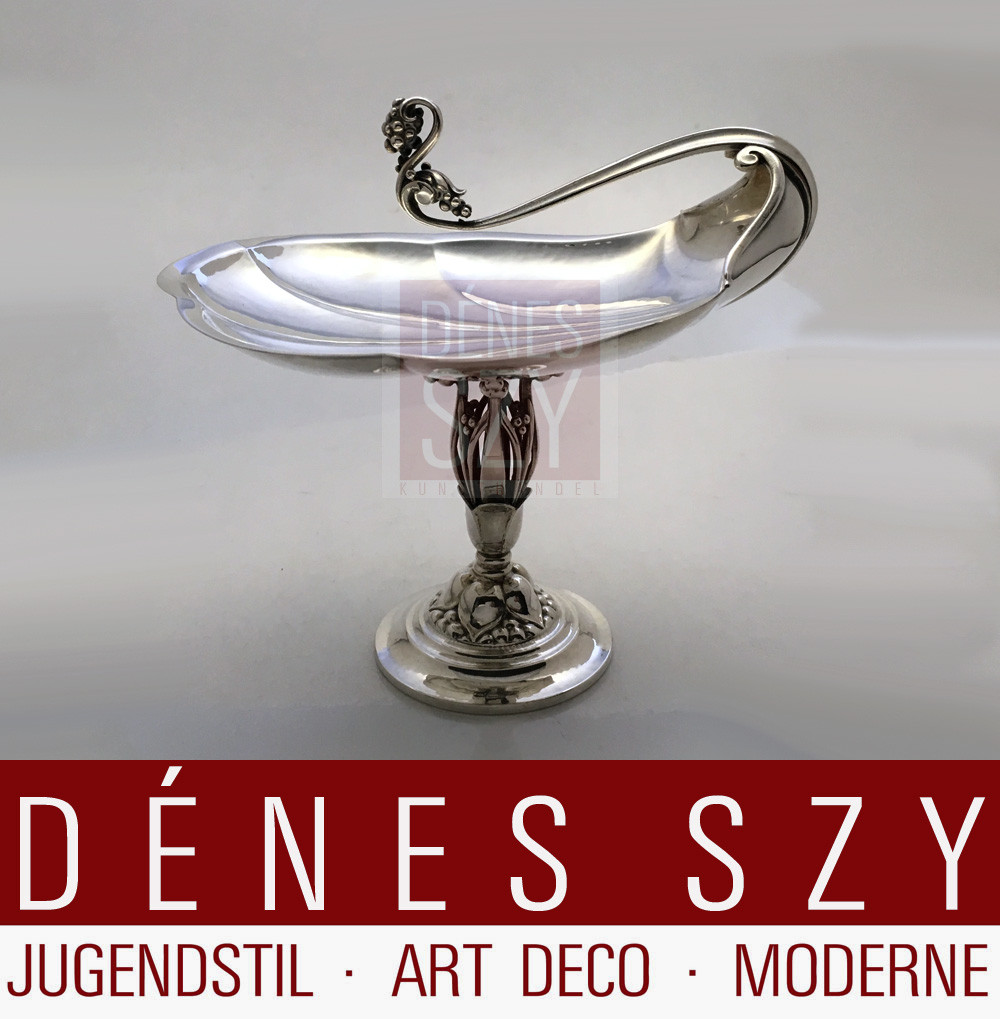 Marken: Georg Jensen Firmenmarke ab 1918, Englische Importmarke für London 1928, Sterling Denmark, Modell No. sowie Georg Jensen Signatur, extrem selten!