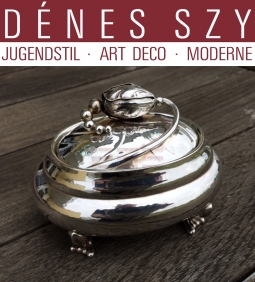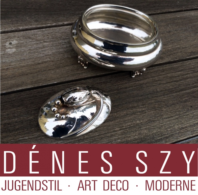 Georg Jensen Silversmiths, Design Georg Jensen, danish Art Nouveau, handmade Sterling silver, ‘Blossom’ pattern, oval sugar box # 2, Copenhagen Denmark