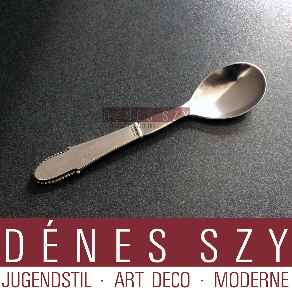 Georg Jensen Silversmithy, Design Georg jensen 1916, Kugle, Beaded pattern, Handcrafted Sterling silver cutlery, egg spoon with steel, Copenhagen Denmark.