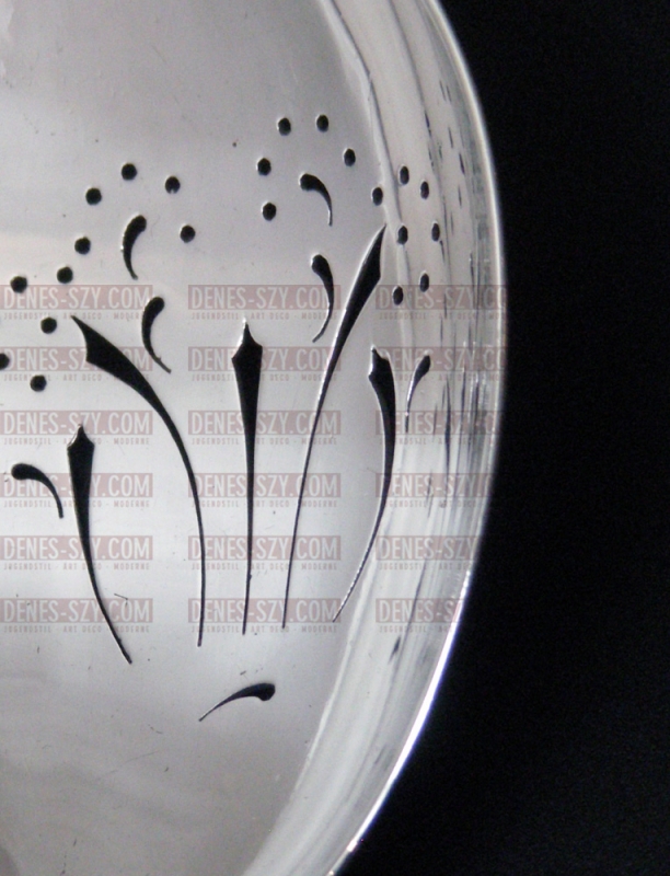 Georg Jensen Silber Besteck PYRAMIDE, Vorlegelöffel Durchbruch Vorlegelöffel, Modell: PYRAMIDE # 15 Entwurf: Harald Nielsen 1927 Ausfuehrung: Georg Jensen Silberschmiede, Kopenhagen 1930er Jahre, Sterlingsilber Maße: Länge 24,6 cm, Gewicht 154 g. — 1 Inch (Zoll) = 2,54 Zentimeter — Zustand: sehr gut Harald Nielsen [ Barse 1892 – 1977 Hellerup] bekam 1909 durch die Hochzeit seiner Schwester mit Georg Jensen die Möglichkeit, eine Ziseleurlehre in der Georg Jensen Silberschmiede zu absolvieren. Er avancierte schnell zum vertrautesten Mitarbeiter von Georg Jensen und Johan Rohde. Er war der führende Designer auf dem Weg von der verspielten Jugendstil Ornamentik der ersten Jahre der Georg Jensen Silberschmiede hin zu einem strengen Design. Seine Pyramiden Serie, die er ab Mitte der 1920er Jahre entwickelte, wurde zum Wendepunkt der Stile und gleichzeitig mit zu einer der erfolgreichsten Serien, die die Georg Jensen Silberschmiede je geschaffen hat. Nach dem Tod Georg Jensens im Jahr 1935 wurde die Fortführung der Georg Jensen Silberschmiedekunst zu seinem Lebenswerk. Seine zweite äußerst erfolgreiche Besteckserie “Old Danish” oder “Dobbeltriflet” kreierte er 1947, die sich ein sehr populäres dänisches Besteck des 18. Jahrhunderts als Vorbild nahm und seine Formen in die Moderne übertrug. Bis ins hohe Alter arbeitete er als Künstlerischer Leiter und Direktor der Silberschmiede. Georg Arthur Jensen (1866 – 1935 Kopenhagen) eröffnete nach absolviertem Bildhauerei-Studium und anschließender Mitarbeit im Atelier des dänischen Hofjuweliers Michelsen 1904 sein eigenes Atelier in Kopenhagen. Hier entsehen vor allem Schmuckstücke, aber auch vereinzelt Korpusware, wie eine kleine Teekanne, die zum Prototyp der Besteck- (1919 entworfen) und Korpus-Serie MAGNOLIA # 2 / BLOSSOM # 84 wurde. Georg Jensens erster Besteckentwurf entstand 1906 für das Muster ANTIK / CONTINENTAL. Bereits 1924 wurde eine Zweigstelle der höchst erfolgreichen Georg Jensen Silberschmiede / silversmithy auf der 5th Avenue in New York eröffnet. Bis heute werden ausschließlich qualitativ hochwertige Silberarbeiten, meist handgeschmiedet, namenhafter Designer vertrieben, wie Sigvard Bernadotte, Muster BERNADOTTE, Harald Nielsen, Muster PYRAMIDE, Johan Rohde, Muster KÖNIG, Otto Gundlach Pedersen, Muster KAKTUS, Henning KoppelNanna DitzelVivianne TORUN Buelow-Huebe, etc. MARKEN AUF GEORG JENSEN SILBER Korpusware: ANTIK, BERNADOTTE, CARAVEL, CYPRESS, DOBBELTRIFLET, KAKTUS, KÖNIG, KÖNIGIN, KUGEL, MAGNOLIA, PYRAMIDE, RELIEF Bestecke: ANTIK, BERNADOTTE, CARAVEL, CYPRESS, DOBBELTRIFLET, KAKTUS, KÖNIG, KÖNIGIN, KUGEL, MAGNOLIA, PYRAMIDE, RELIEF Literatur: Designlexikon International, Jensen, Georg Literatur: Janet Drucker, Georg Jensen: a tradition of splendid silver 2nd Edition. Literatur: Janet Drucker, Georg Jensen, A tradition of splended silver (1997) Literatur: Georg Jensen Holloware; The Silverfund collection Literatur: David A.Taylor: Georg Jensen Jewelery, 2005 Literatur: Georg Jensen Silversmithy, 77 Artist, 75 Years Literatur: Grassi Museum für Angewandte Kunst Leipzig, Austellung und Katalog, Made in Denmark, Formgestaltung seit 1900 Weiterführende Literatur: Literatur: Joerg Schwandt: Karl Gustav Hansen. Solv / Silber 1930-1994. Literatur: Grassi Museum für Angewandte Kunst Leipzig, Austellung und Katalog, Made in Denmark, Formgestaltung seit 1900 Literatur: Museet pa Koldinghus: Karl Gustav Hansen Solv / Silber 1930-1994. Kolding 1994. Gerne kümmern wir uns um Ihre Wünsche, klicken Sie bitte weiter oben rechts auf SIE HABEN FRAGEN? oder ganz oben rechts auf KONTAKT. Oder besuchen Sie unsere Geschäftsräume während der Öffnungszeiten. Finden Sie weitere Objekte auf unserer Produktseite!