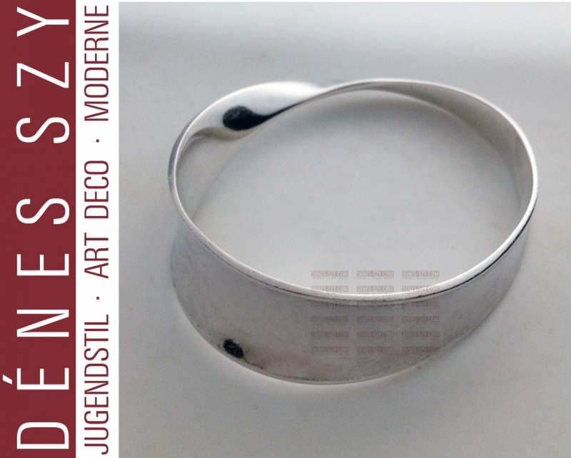 Georg Jensen silver Jewelry, design Torun, Moebius armring 206 BANGLE, Bracelet # 206 pattern, modell Möbius / Mobius, Design introduced first 1968 ‘TORUN’ – Vivianna Torun Bülw-Hübe (1927 Malmö – 2004 Copenhagen) Execution: Georg Jensen Silversmithy Copenhagen Denmark first period ca 1970 Sterling Silber 925/1000 Gewicht 48 Gramm Maße: 66×56 mm small; 69×59 mm large — 1 Inch (Zoll) = 2,54 Zentimeter — very good almoust never used condition !! more items on my website Georg Jensen silversmithy, Vivianna Torun Buelow-Huebe (Swedish 1927-2004) design, Original Mid Century Modern handcrafted Sterling silver jewelry, Moebius armring 206, Copenhagen Denmark