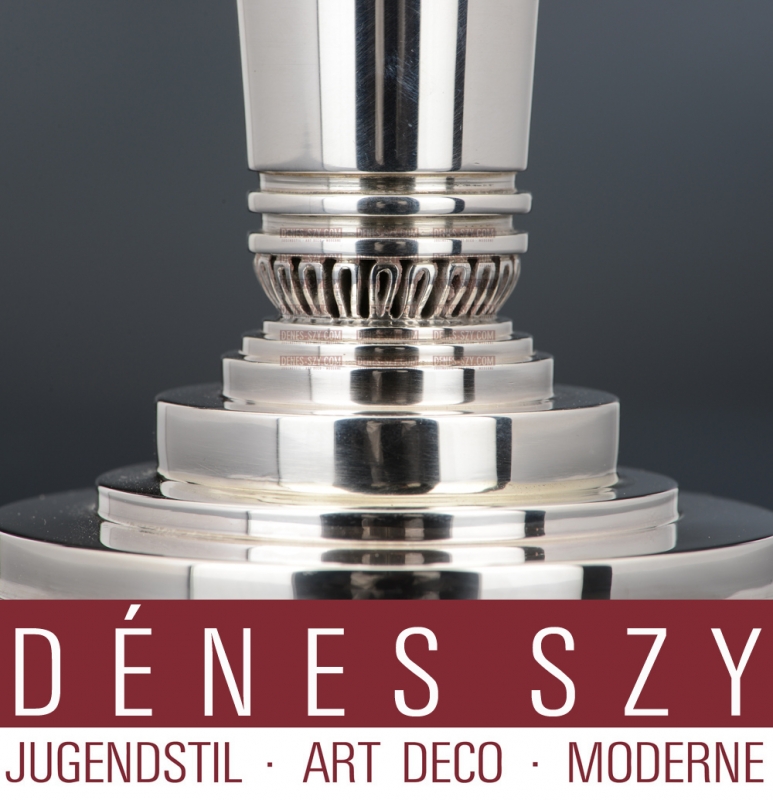 Georg Jensen Silversmiths, Design Harald Nielsen 1930, Art Deco Pyramid pattern, hand crafted handmade, large continental Sterling silver candle holder candle stick 691 B, Copenhagen 1933-1944 Denmark.