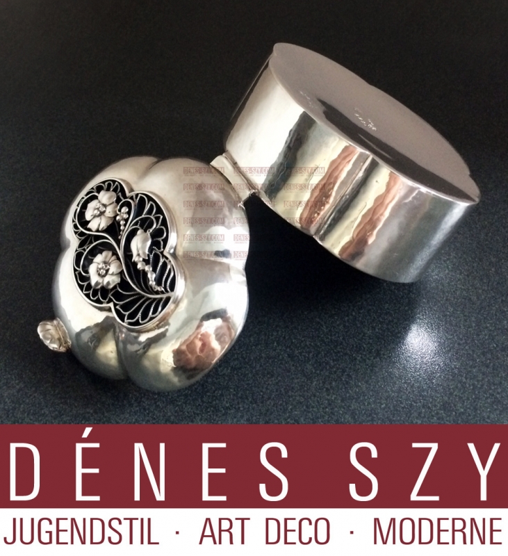 Georg Jensen Silversmiths, Johan Rohde design 1919, vintage, handcrafted, pierced, Sterling silver jewelry keepsake box 114, Copenhagen Denmark 1921, French import marks.