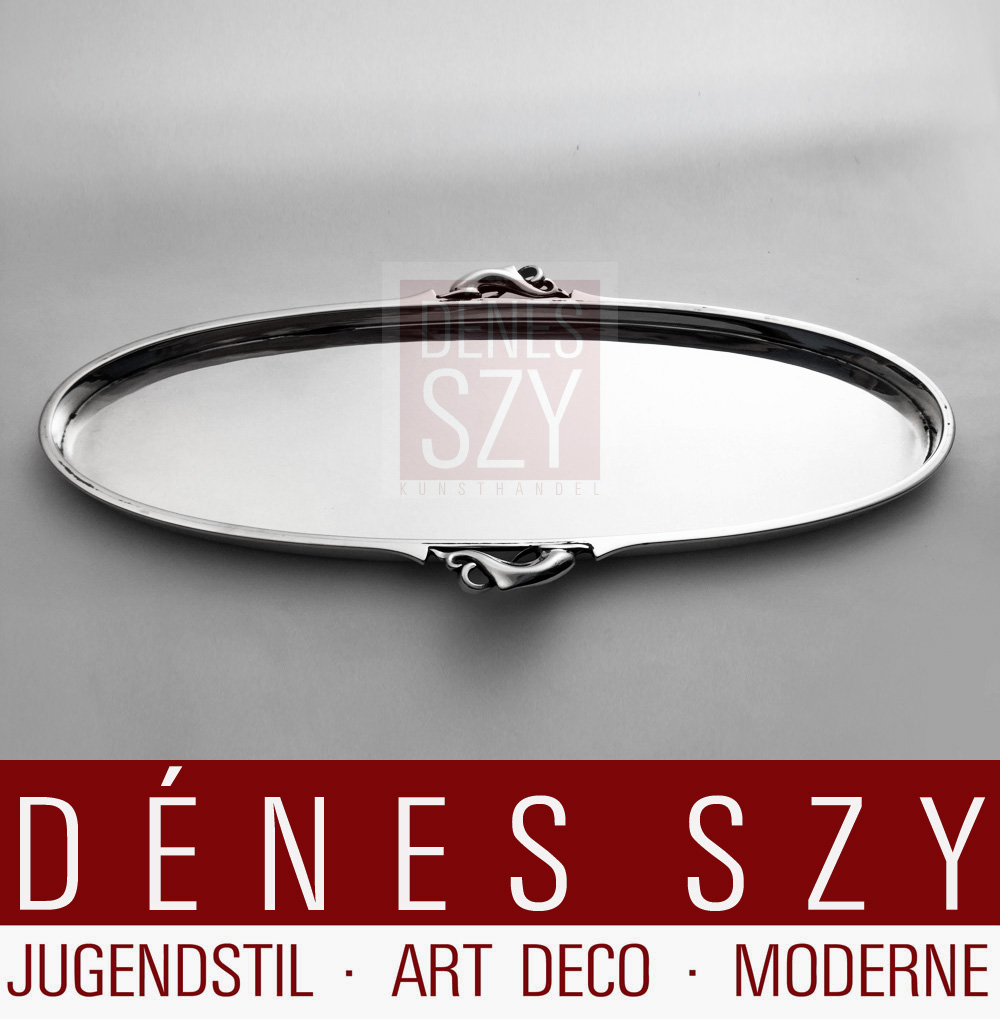 Pre war original continental vintage Georg Jensen Silversmithy, Harald Nielsen design 1932, Dolphin series, Pyramid pattern, hand crafted handmade, Art Deco, small oval Sterling silver serving tray, 150,, Copenhagen 1933-44, Denmark.