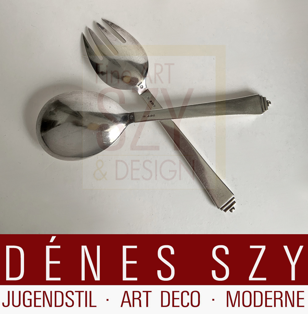 Vorlegelöffel und Vorlegegabel, Tafelbesteck, Essbesteck, Art Deco Silberbesteck,
