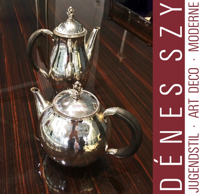 Georg Arthur Jensen (1866 – 1935 Kopenhagen) eröffnete nach absolviertem Bildhauerei-Studium und anschließender Mitarbeit im Atelier des dänischen Hofjuweliers Michelsen 1904 sein eigenes Atelier in Kopenhagen. Hier entsehen vor allem Schmuckstücke, aber auch vereinzelt Korpusware, wie eine kleine Teekanne, die zum Prototyp der Besteck- (1919 entworfen) und Korpus-Serie MAGNOLIA # 2 / BLOSSOM # 84 wurde. Georg Jensens erster Besteckentwurf entstand 1906 für das Muster ANTIK / CONTINENTAL. Bereits 1924 wurde eine Zweigstelle der höchst erfolgreichen Georg Jensen Silberschmiede / silversmithy auf der 5th Avenue in New York eröffnet. Bis heute werden ausschließlich qualitativ hochwertige Silberarbeiten, meist handgeschmiedet, namenhafter Designer vertrieben, wie Sigvard Bernadotte, Muster BERNADOTTE, Harald Nielsen, Muster PYRAMIDE, Johan Rohde, Muster KÖNIG, Otto Gundlach Pedersen, Muster KAKTUS, Henning Koppel, Nanna Ditzel, Vivianne TORUN Buelow-Huebe, etc.