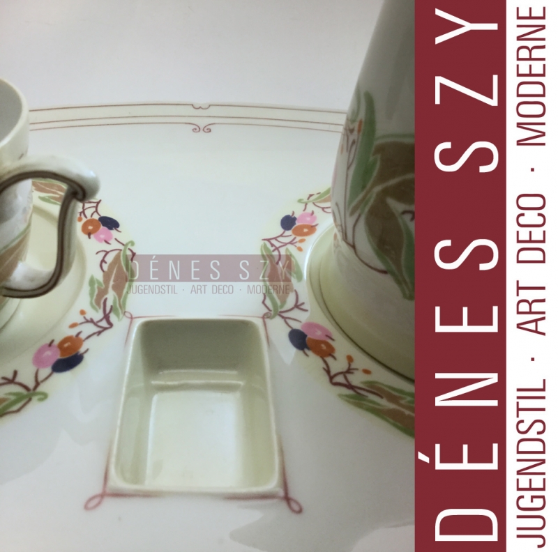 Georges de Feure Solitaire En Porcelaine Art Nouveau Limoges Haviland Solitaire en porcelaine Art Nouveau Design: Georges de Feures vers 1905 Exécution: Haviland, Limoges vers 1905 Signé de Feure et marqué Haviland Limoges, GDA France Hauteur pot 19,5 cm, hauteur coupe 5,5 cm, diamètre coupe 8 cm, plateau 32 x 22 cm Condition: très bon Lit.: ALISTAIR DUNCAN, THE PARIS SALONS 1895-1914 Volume IV, CERAMICS & GLASS La Maison Moderne Paris Literatur: Bertrand MOTHES: La Maison Moderne de Julius Meier-Graefe. In: Catherine Méneux, Emmanuel Pernoud et Pierre Wat (ed.): Actes de la Journée d’études Actualité de la recherche en IXe siècle, Master 1, Années 2012 et 2013, Paris, site de l’HiCSA, mis en ligne en janvier 2014.