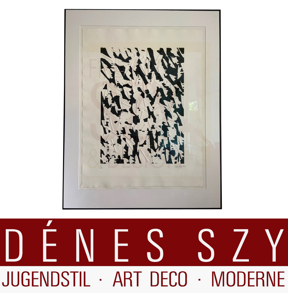 Günther Uecker [geboren in Wendorf 1930], Maler und Objektkünstler, Vertreter der Kinetischen Kunst. Studium der Malerei 1949 bis 1953 in Wismar und Ost-Berlin. 1955 Flucht nach Westdeutschland, anschließend Studium in Düsseldorf bei Otto Pankok. 1961 Eintritt in die Künstlergruppe ZERO von Heinz Mack und Otto Piene. Erste Nagelbilder entstehen bereits 1956/57. Gruppe Zero 1957 gründen Heinz Mack und Otto Piene in Düsseldorf die ZERO-Bewegung, der sich 1961 Günther Uecker anschließt. ZERO ist als Neuanfang in der Kunst zu verstehen. Neuartige Gestaltungsprinzipien und ästhetische Ideen, in denen Licht und Bewegung dominieren, manifestieren sich und überwinden das tradierte Kunstverständnis. Die kühnen, kreativen Experimente in den Ateliers, begleitet von den spektakulären und legendären Aktionen und Environments, sind für die ZERO-Zeit und Ihre Protagonisten kennzeichnend. Uecker Praegedruck Ohne Titel 1992 Gerne kümmern wir uns um Ihre Wünsche, klicken Sie bitte weiter oben rechts auf SIE HABEN FRAGEN? oder ganz oben rechts auf KONTAKT. Oder besuchen Sie unsere Geschäftsräume während der Öffnungszeiten. Finden Sie weitere Objekte auf unserer Produktseite!