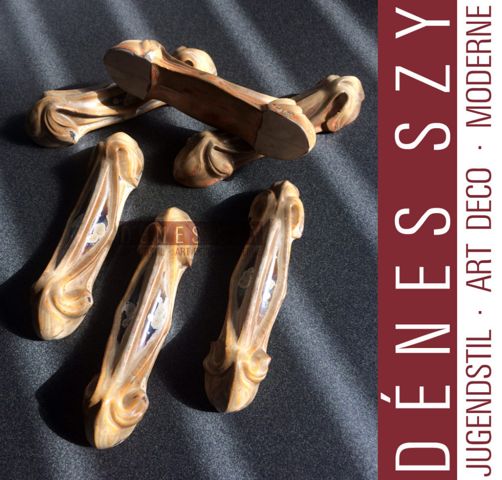 Ensemble de 6 porte-couteaux Art Nouveau, Conception: Hector Guimard, Paris vers 1900, Céramique avec glaçure de cristal expert