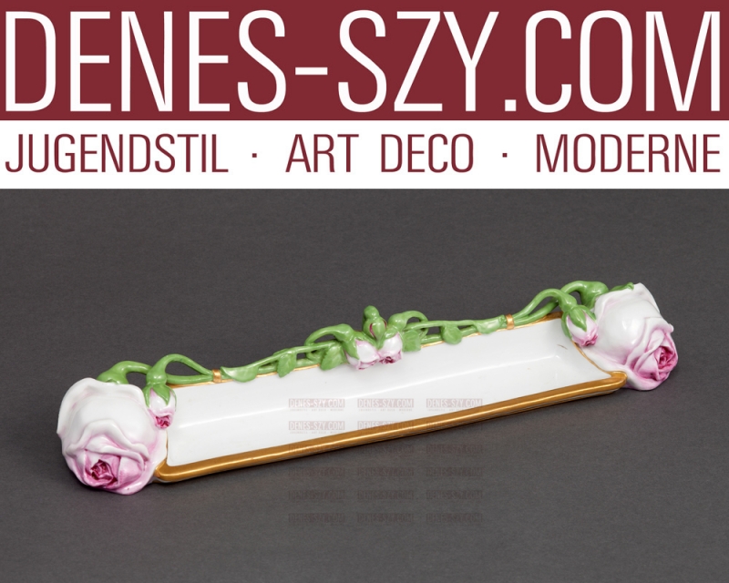 Vogeler, Meissen 1900, Art Nouveau China, ladys rose bud pin tray,