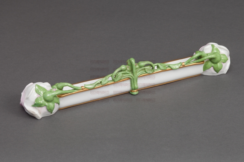 Royal Meissen, German Art Nouveau porcelain, Design Heinrich Vogeler, Worpswede, rose bud pattern pin tray, pen tray, dish, from a ladies dresser set 1906.