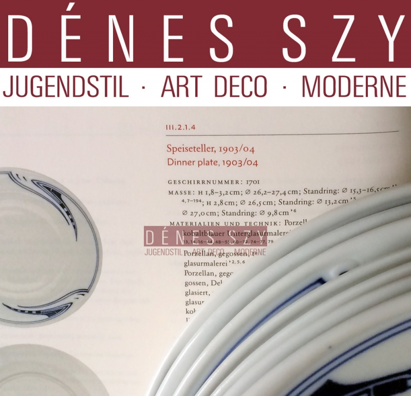 Literatur: Daenens, Lieven, Design museum Gent; History and collections (2007) Porseleinen serviesonderdelen van Henry van de Velde (1863-1957), voor Meissener Porzellanmanufaktur, 1903-1904, Seite 78. Sauciere, Brötchenteller, Eßteller in Kobalt Blau