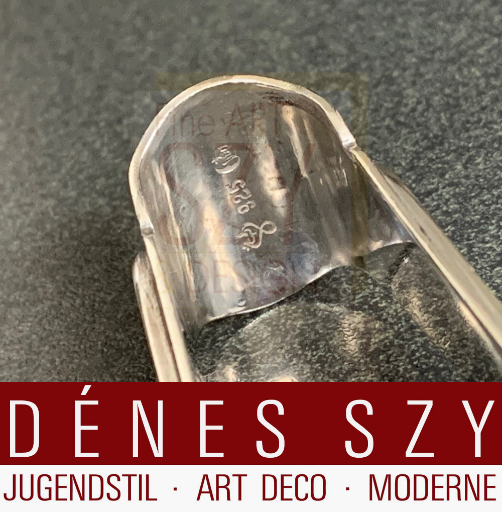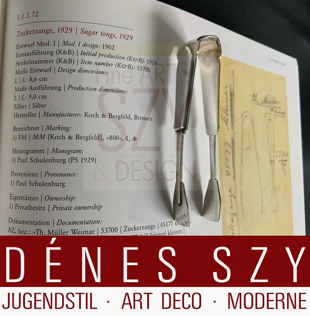 Jugendstil Zuckerzange, kleine Variante, Entwurf: Henry van de Velde um 1903, Modell I, Koch und Bergfeld, Bremen ca. 1929, Silber 925